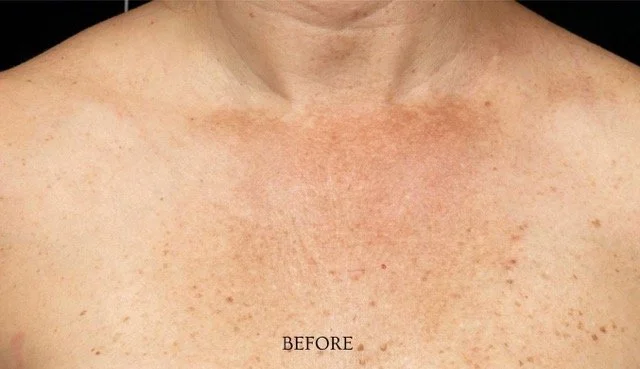 Chest: Targets pigmentation caused by sun damage and enhances skin texture for a smoother look.