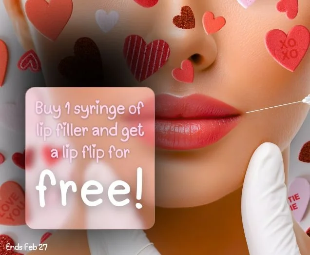 Lip Filler Special: "Celebrate Valentine's Day with a free Lip Flip (using Botox or Dysport) when you purchase one syringe of lip filler."