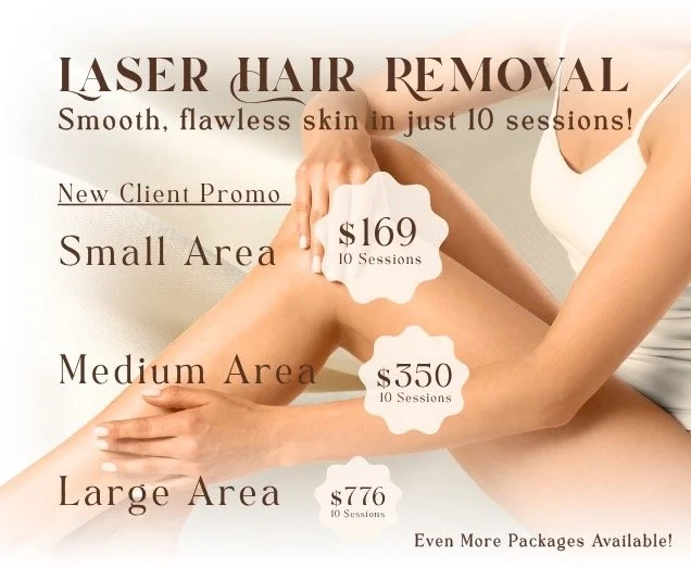 Smooth and flawless skin is now within reach with our laser hair removal packages. 70% off for new clients only! Get a small area for only $169, a medium area for $330, and a large area for $776.